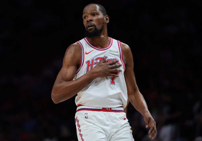 3月22日讯 NBA常规赛,火箭主场123-122险胜热火。赛后杜兰特接受采访。